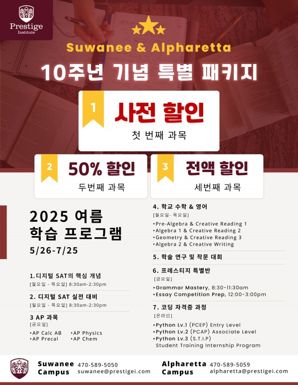과외 [Prestige Institute] 프레스티지 10주년 기념 여름 특별 패키지!!
