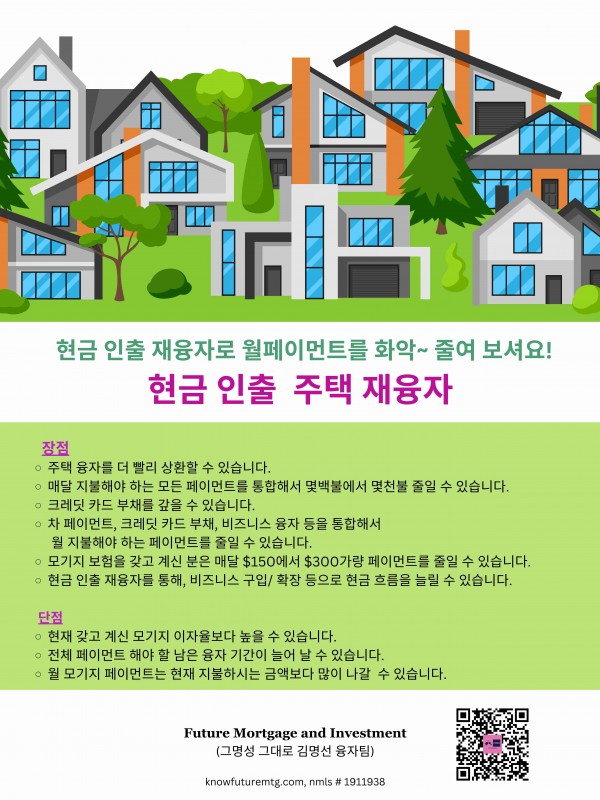 구인 현금 인출 재융자로 월페이먼트를 화악 ~ 줄여 보셔요!