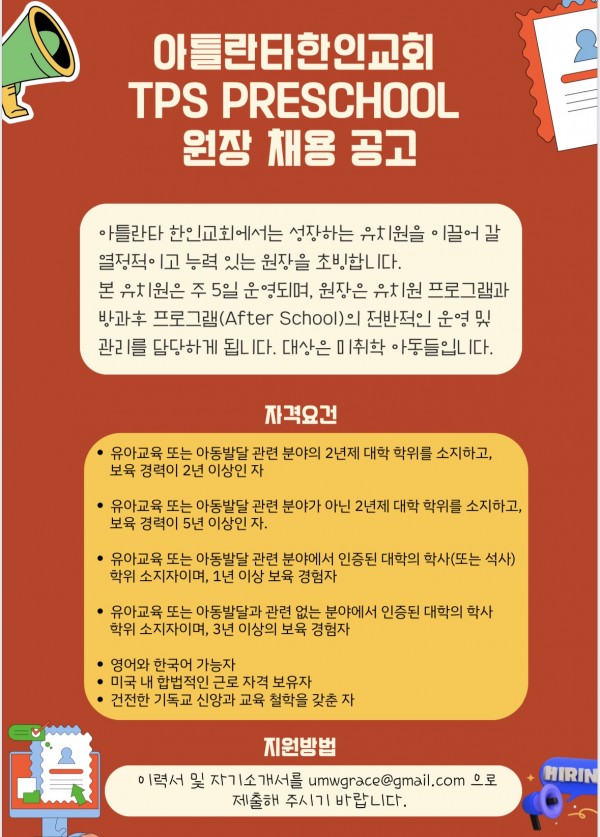 아틀란타 한인교회에서는 성장하는 유치원을 이끌어 갈