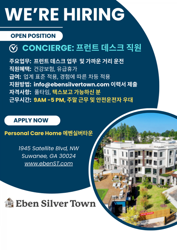 구인 ✉ 에벤실버타운: Concierge-프런트 데스크 직원, 남녀노소 무관✉