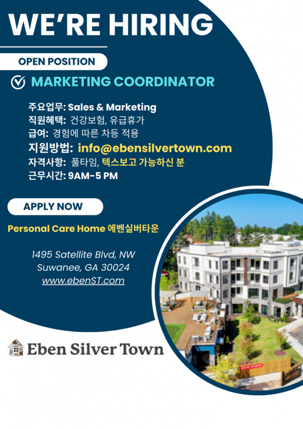 구인 ✦ 스와니 에벤실버타운: Marketing Coordinator ✦