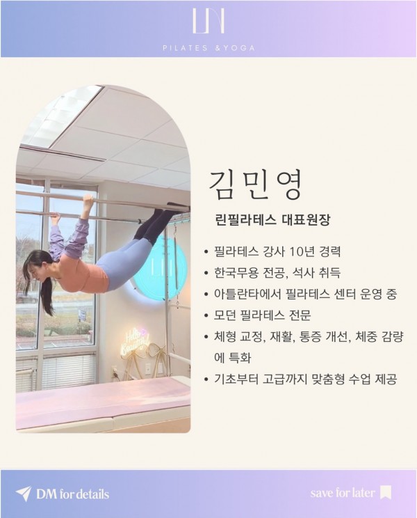 우리 린 필라테스 스튜디오에서는 10년차 전문 원장님의 밀착 지도와 함께 다양한 프로그램을 제공합니다. 주저하지 말고 도전해 보세요! 필라테스와 함께 건강하고 행복한 삶을 시작해 보세요! ?✨