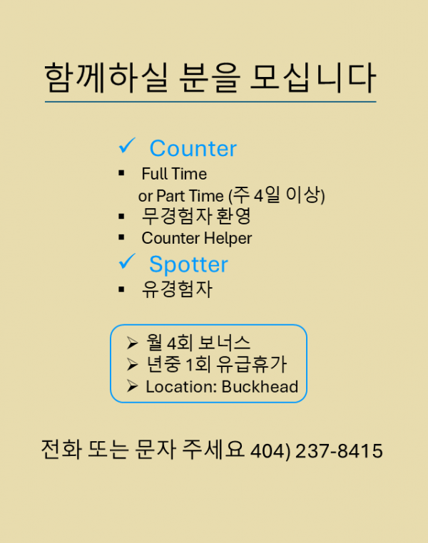 구인 >> 세탁소에서 함께 하실 분을 모십니다 << **초보자 환영**