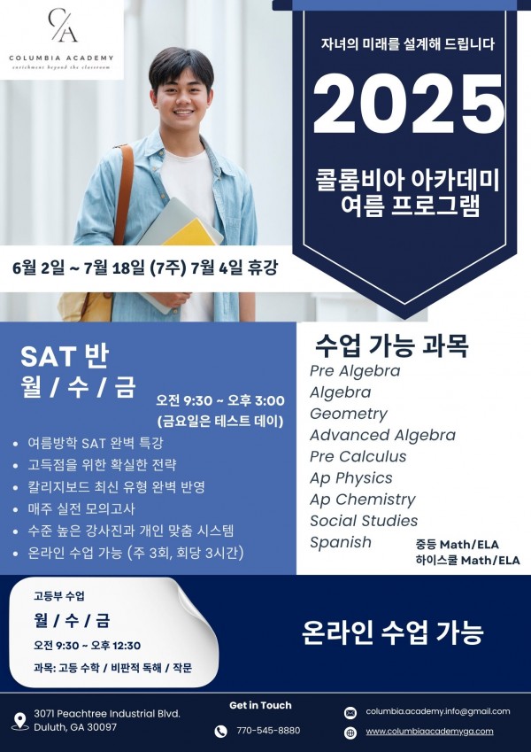 여름방학동안 SAT/ AP 과목들/ 하이스쿨 영어 수학 클라스 진행됩니다.