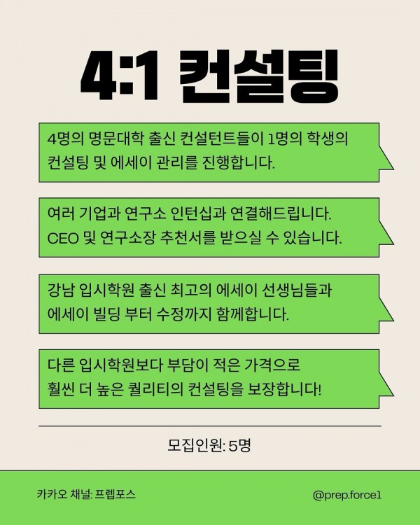 최고의 선생님들과의 4:1 컨설팅으로 진행합니다.