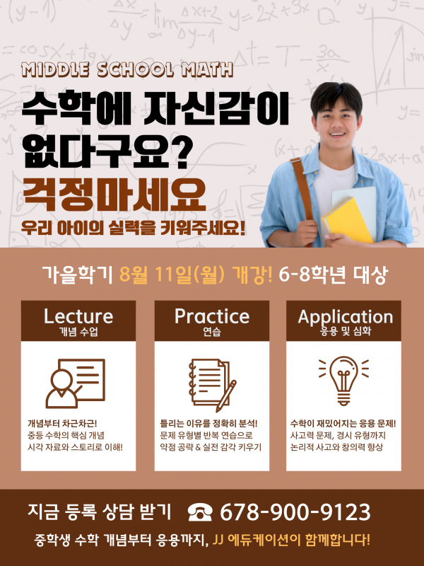 안녕하세요, JJ Education의 가을학기 중학생 대상 프로그램을 안내드립니다.