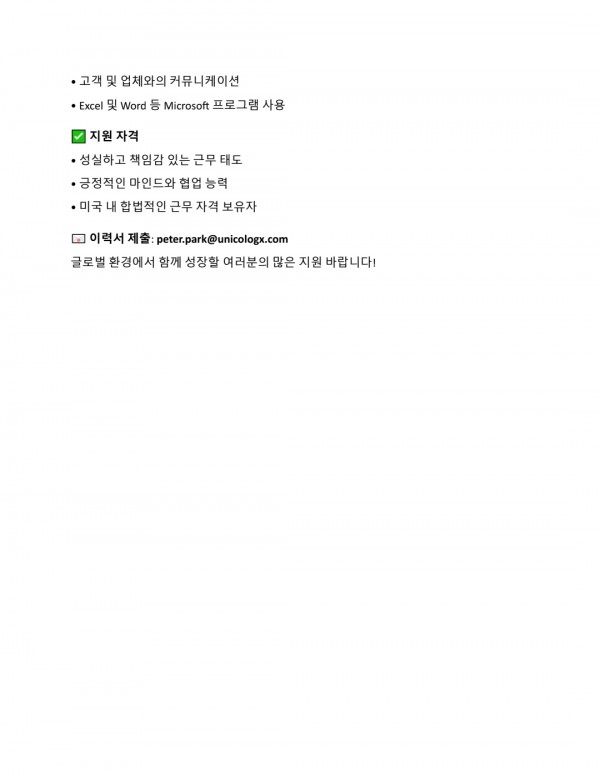 운송회사에서 Logistics Operation 업무 직원 구합니다