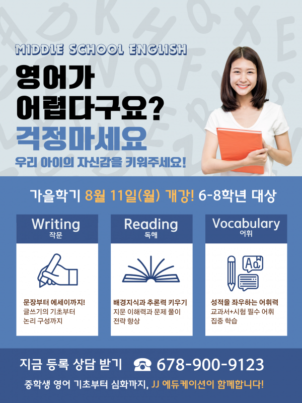 안녕하세요, JJ Education의 가을학기 중학생 대상 프로그램을 안내드립니다.