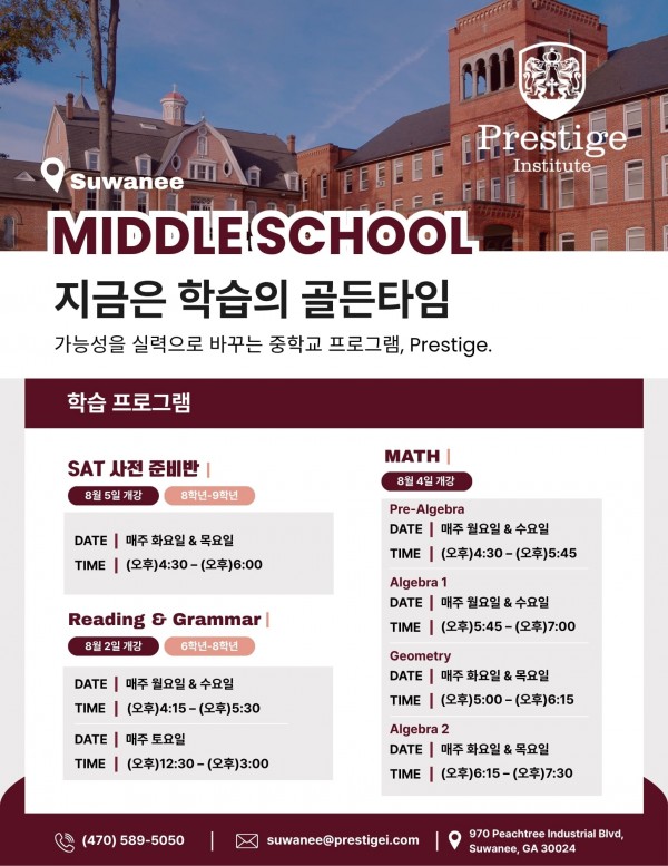 과외 [Prestige Institute] 중학교때부터 준비하세요! - Prestige 중학교 학습 프로그램 개강!