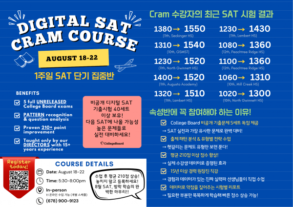 8월 18일부터 8월 22일까지 단 5일간 진행되는 Digital SAT Cram Course!