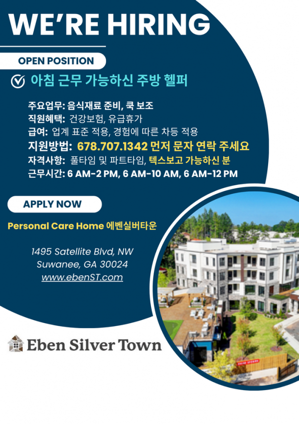 안녕하세요. 스와니에 위치한 에벤실버타운입니다.