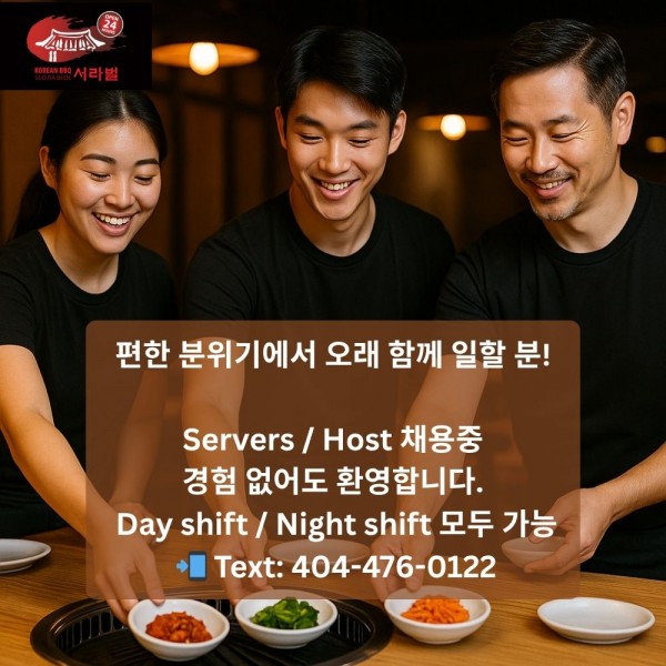 애틀랜타대표한식, 서라벌과함께일하실분을찾습니다.”