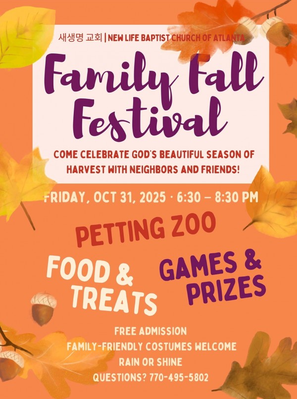 새생명교회 Family Fall Festival (10월 31일 스와니 지역) Free Admission!