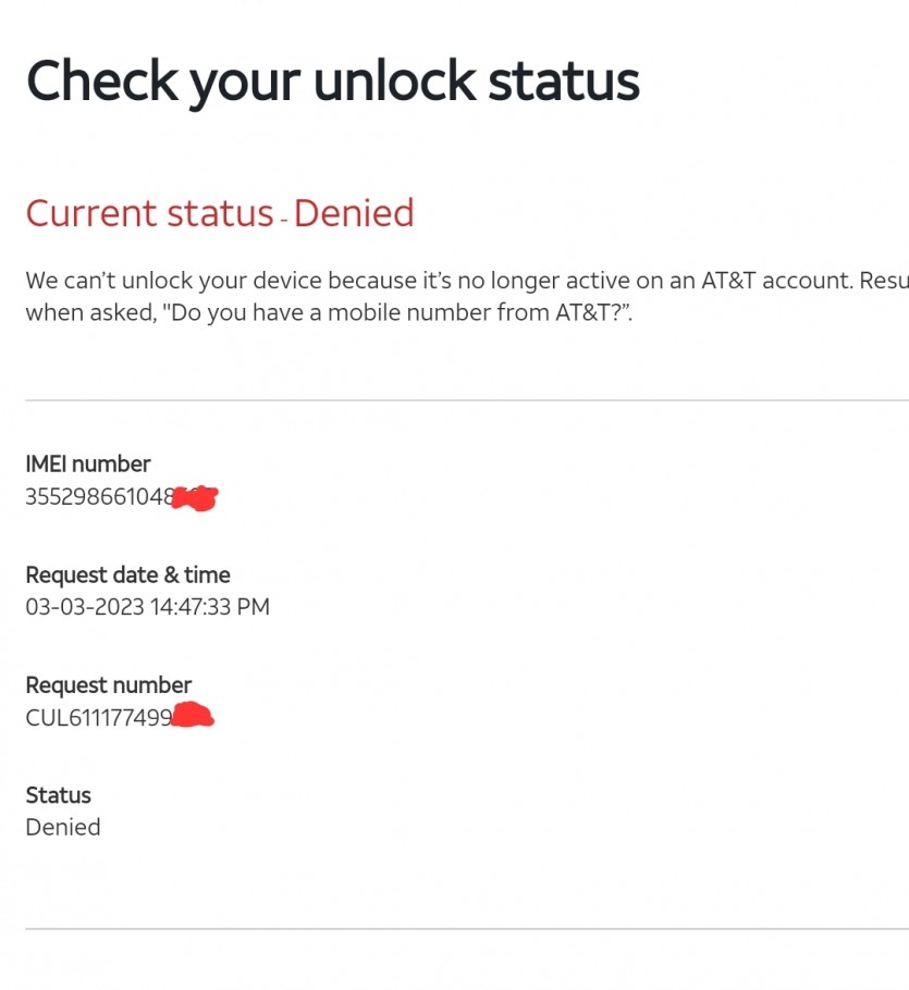 Hi, it's AT&T. Looks like the info we need isn't in our system yet. If you still want to unlock your device, call 800.331.0500 or 611 for help.