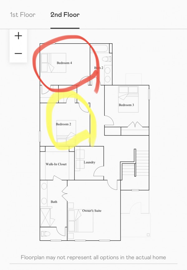 - 방 (사진 상 빨간 동그라미) + 세탁기 2층에 위치