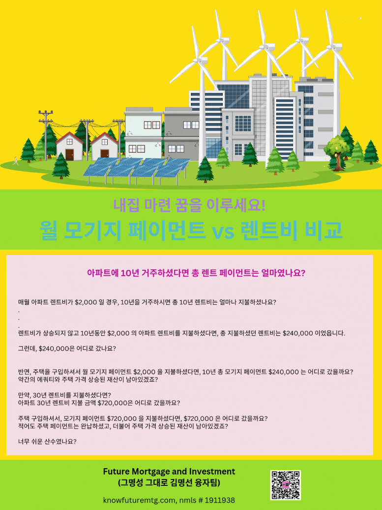 대출인의 자격이 승인되는 조건에 한합니다.지역에 따라 집의 가치와 매매 가격과 월 모기지 페이먼트나 렌트비가 매우 다를 수 있습니다. (Compliance Approved)