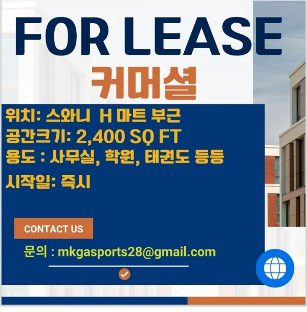 렌트 커머셜 Lease 2,400 sq ft (Exit 111 H마트 부근 )