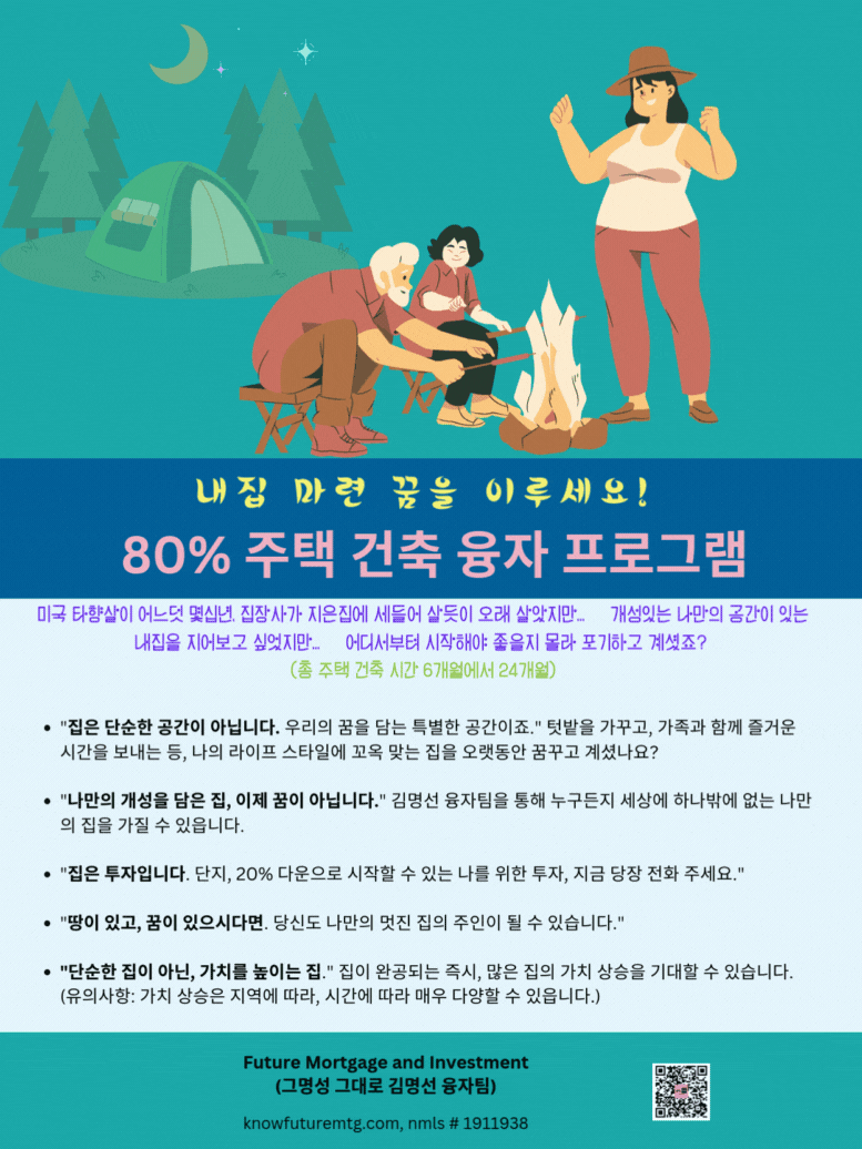 주의 사항: 융자는 돈 (신용)이고 돈 (신용) 은 빚입니다. 융자를 잘 활용하면 자산 증식이나 경제 생활에 큰 이익을 주지만, 그렇지 못할 경우, 집을 잃거나 경제적인 파국의 원인이 될수 있읍니다. 육체적인 고통이나 정신적인 고통은 911을 누르시고, 채무로 인한 경제적인 고통은 CFPB, Financial Counselor 혹은 가까운 융자 전문가에게 문의 하셔요.