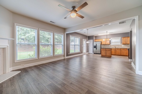 LVP wood floors thru-out on main, stairs, upstairs hallway, master bedroom, and 2nd bedroom.