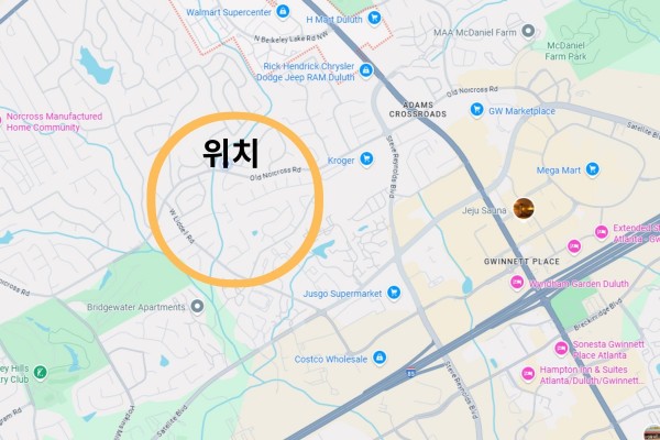 위치: West Liddle Rd(웨스트 리들 로드)와 Old Norcross Rd(올드 노크로스 로드) 근처.