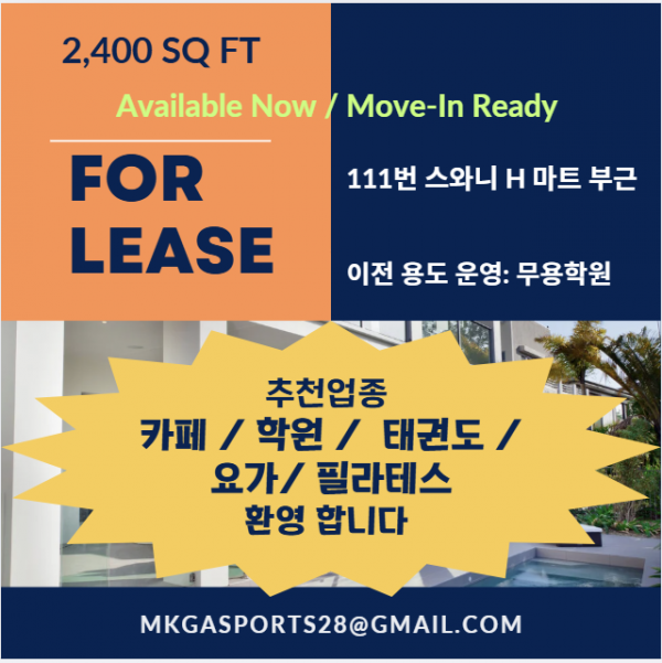 렌트 111번 스와니 H 마트 부근 커머셜 렌트 2,400 SQ FT