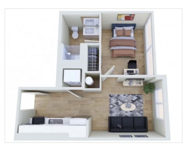 방: 1B1B (거실, 부엌 포함 완전 단독 유닛)