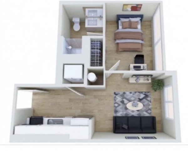 방: 1B1B (거실, 부엌 포함 완전 단독 유닛)