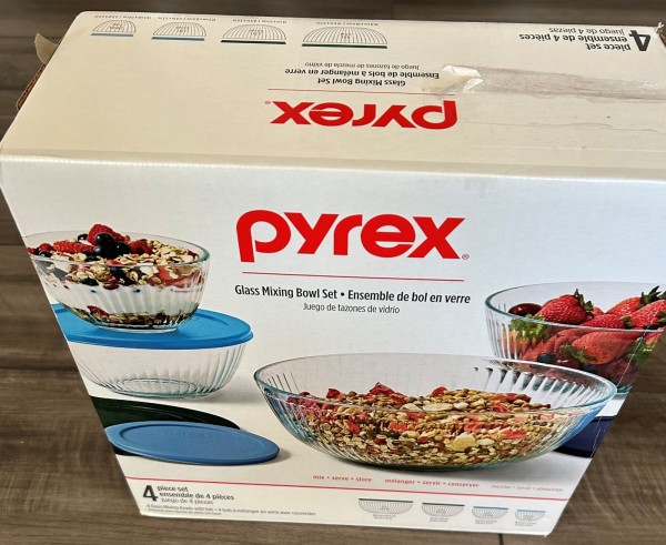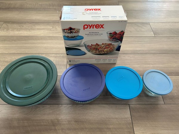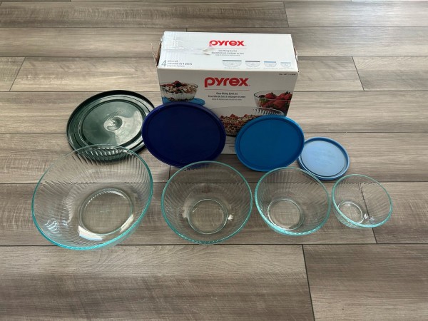 팝니다 Pyrex 유리 믹싱볼 4종 세트 + 뚜껑 (상태 아주 좋음)