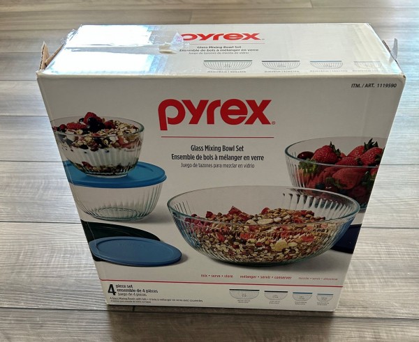 Pyrex 정품 유리 믹싱볼 4개 세트입니다.