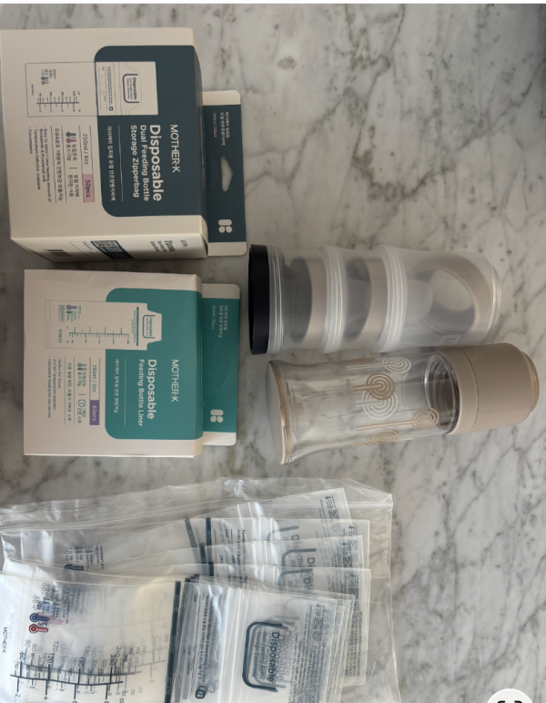 팝니다 *****[미개봉 새상품] 한국 육아용품 마더케이 일회용 젖병 지퍼백 박스 등 풀 세트