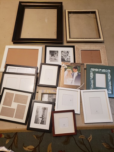 20" by 24" 부터 4" by 6"까지 다양한 사이즈로 구성되어있고 커스튬 액자, 포터리반 우드 액자 또는 백화점에서 구입한 품질 좋은 액자들입니다.