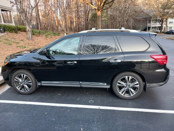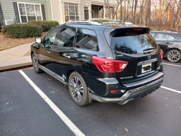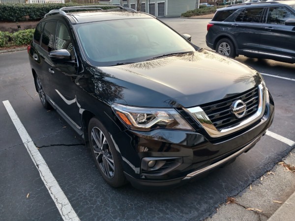 차종은 Nissan pathfinder 이고 2018년식 검정색 입니다. 저도 미국에 올 때 딱히 어떤 차를 살지 정하진 않았는데 예산과 조건에 맞는 차를 구하기가 쉽지 않더라구요. 그래도 혹시 부모님이 오시면 같이 탈 수 있게 3열이 있는 차를 예산 안에 구하다 보니 이 차를 구매하게 되었습니다.^^;