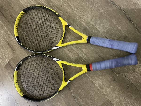 선수인 아들이 팔꿈치 부상 회복기간 동안에 사용했던 라켓입니다.