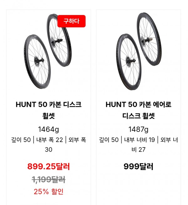 자전거 휠 HUNT 50 Carbon Aero Disc Wheelset > 중고장터