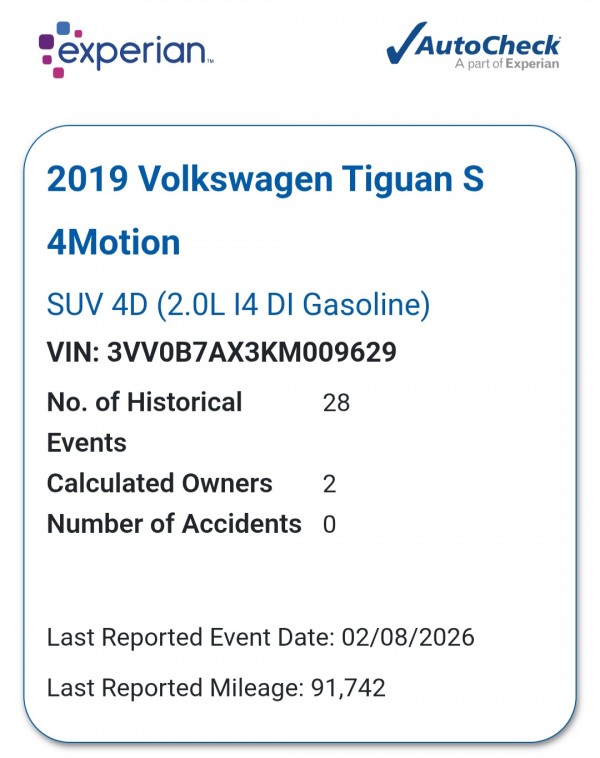 2019 Volkswagen Tiguan S 무사고,비흡연 > 중고장터