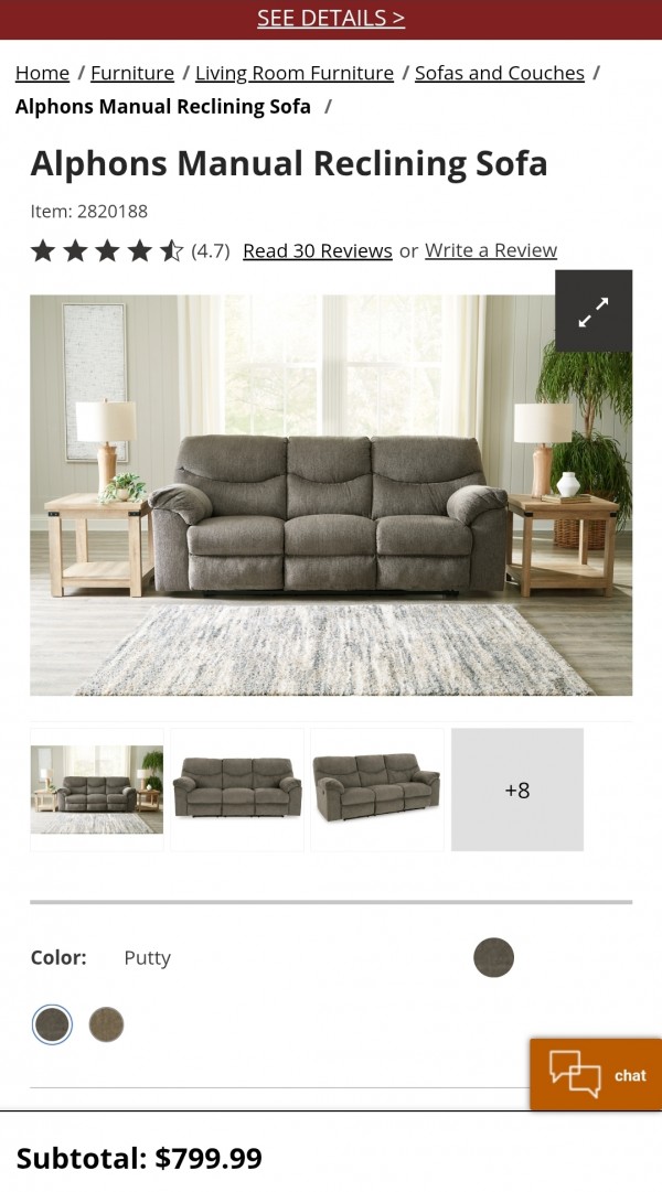 현재도 Ashley furniture 에서 아주 잘 팔리고있는 제품 입니다.