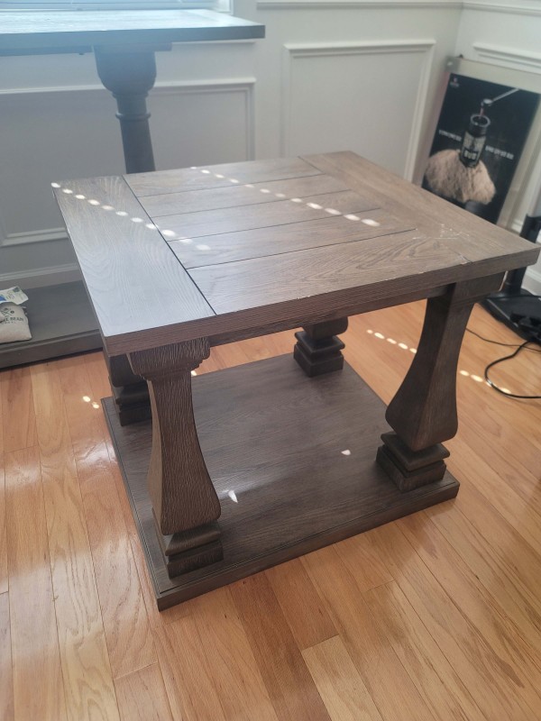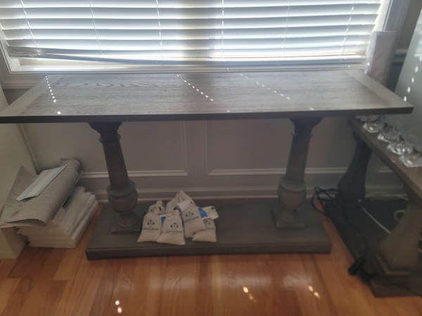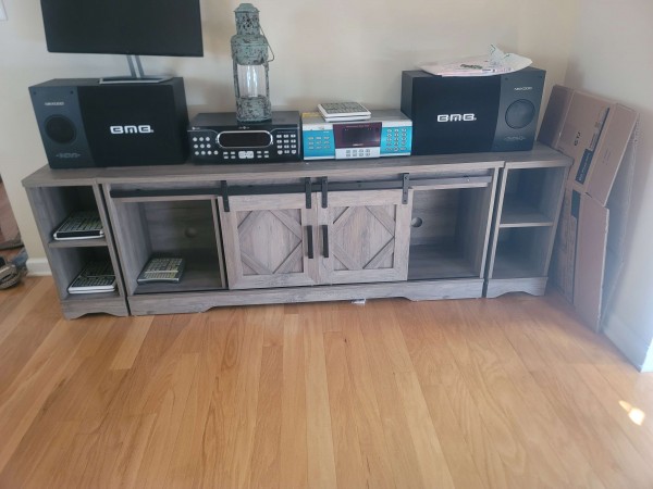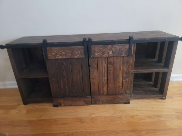7. 원목 러스틱 반도어 TV 스탠드 $200 직접 제작