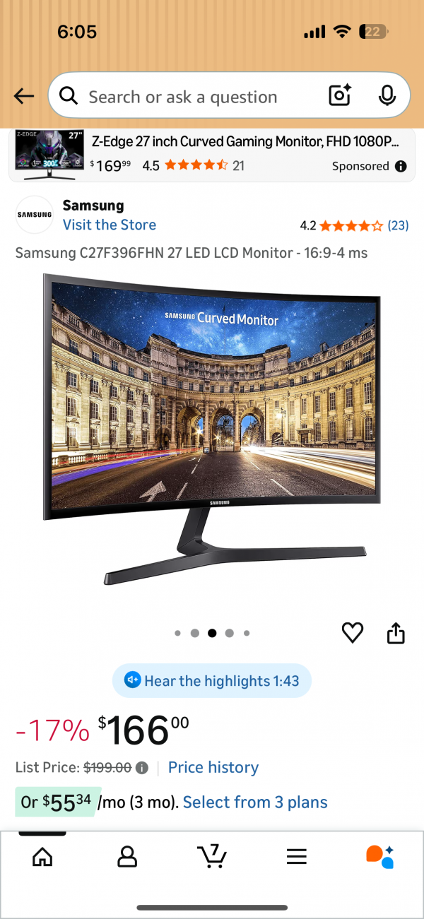 아마존에서 현재 비슷한 스펙 모니터 166불에 판매 중입니다.