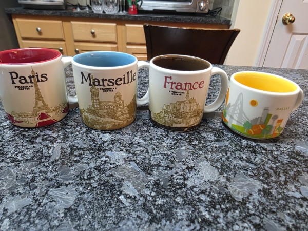 포트메리온 머그컵 각 $5, 스타벅스 컵 $10