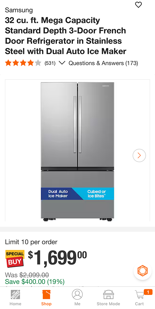32 cu ft 아주 큰 Mega Capacity 3-Door 냉장고 입니다.