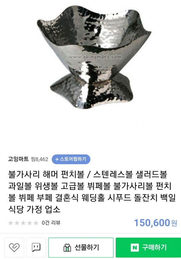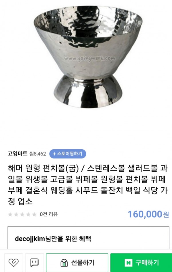 2. 스텐레스 원형 해머 뷔페볼 $50
