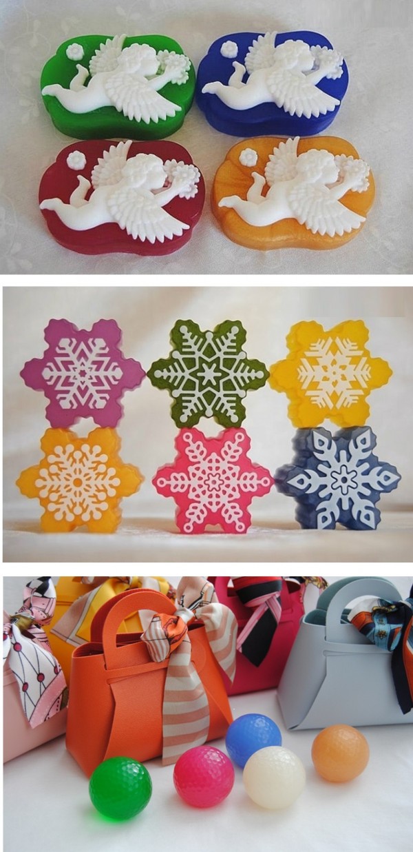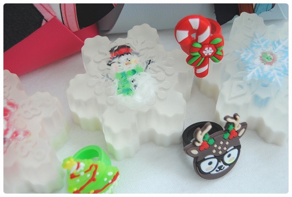 비누속에 실리콘 반지가 들어간 크리스마스 반지비누, 예쁜 천사가 올려진 천사비누, 눈 모양의 눈꽃비누,