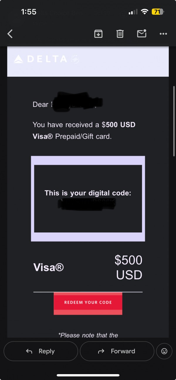 $ 500 Delta VISA Prepaid/Gift Card 판매합니다.
