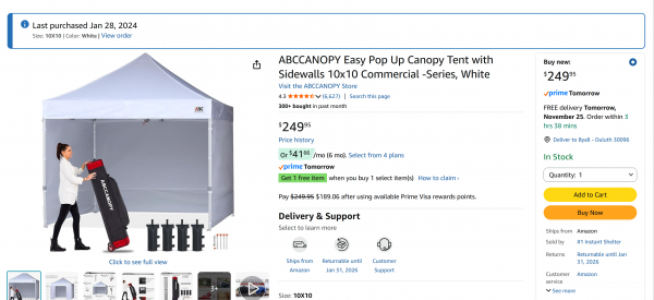 캐노피 천막팝니다 10피트 10피트 사이즈