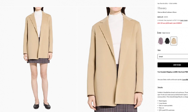 1. Theory코트 $200불 사이즈: S 색상: New Camel