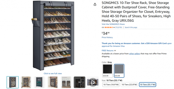 팝니다 SONGMICS 패브릭 10단 신발정리대(커버형) : $10