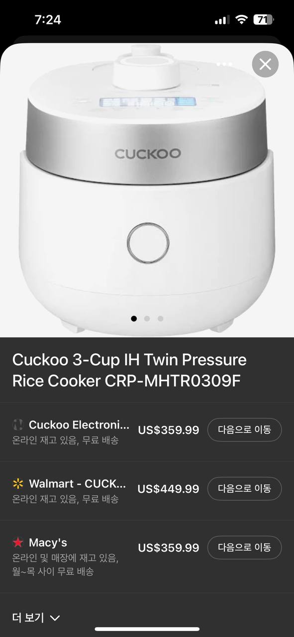7. 쿠쿠압력밥솥 팝니다 2회사용 170불