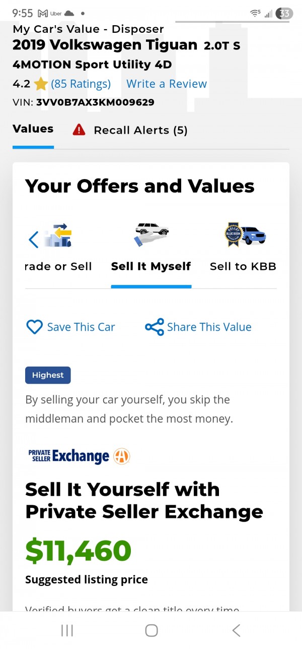 팝니다 2019 Volkswagen Tiguan S 무사고,비흡연