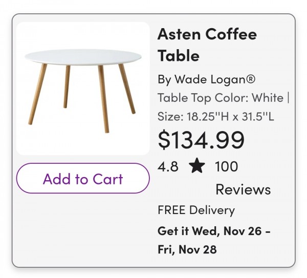 Wayfair 에서 Asten Coffee Table 검색하시면 제품설명 보실수 있습니다.