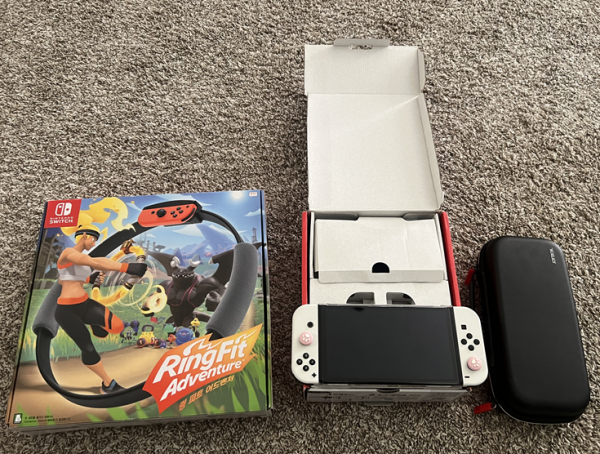 구성품은 기본 스위치 구성품 전부 + RingFit 게임 + 조이트론 케이스 있습니다.